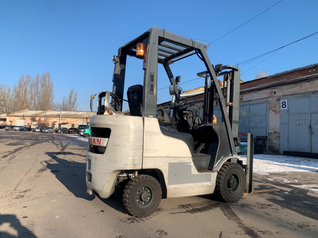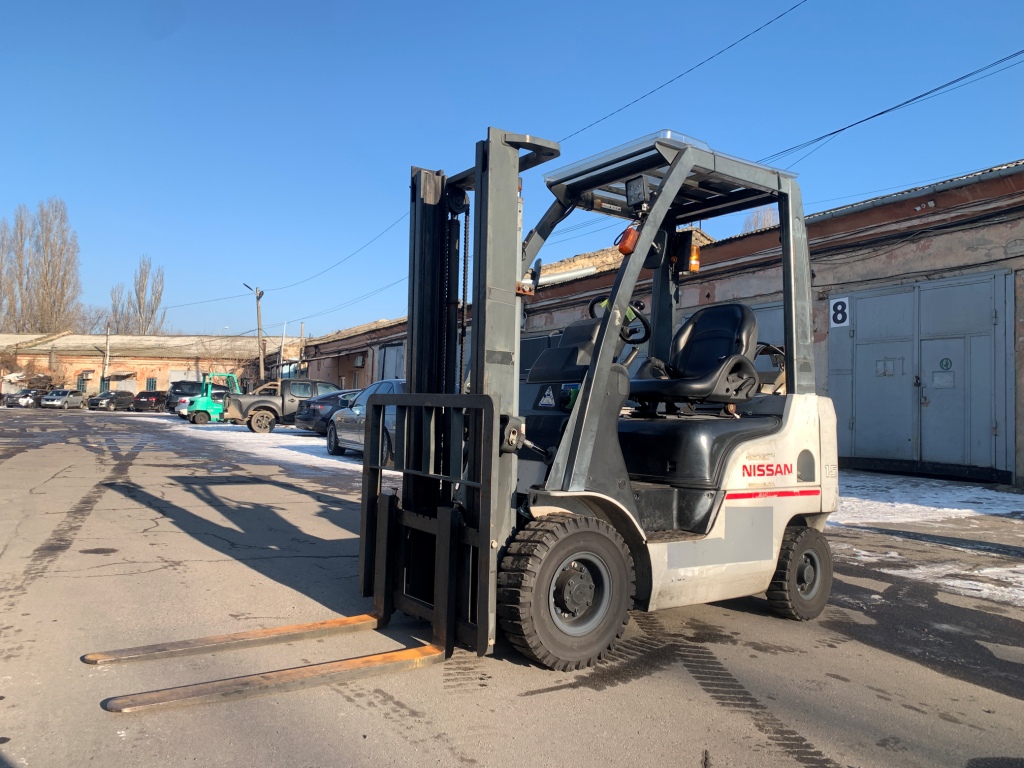 Газ-бензиновий навантажувач Nissan, 2012 року. Модель: P1F1A15D. Номiнальна вантажопідйомність 1.5 тонни. Максимальна висота підйому вантажу 3 метри. Щогла двохсекційна (duplex) яка не втрачає вантажопідйомності при висоті підйому. Двигун газ-бензиновий, з заводським газовим обладнанням, завдяки чому автонавантажувач у теплу пору року можє запускатись вiдразу на газу, без прогріву системи на бензині. Коробка перемикання передач надiйна i найпоширенiша на данний час - гiдромеханiка (автоматична із гідротрансформатором). Обладнаний сучасним двигуном, економічним інжекторним Nissan GK21. 4-циліндровий, робочим об'ємом 2.1 літра і потужністю 48 к. с. який славиться своєю надійністю і невибагливістю і без змін встановлюється на автонавантажувачах по сьогоднішній день і головне ремонтопридатний. Колеса 10 діаметра на ведучiй осі, що покращує прохідність автонавантажувача і збільшує його кліренс.